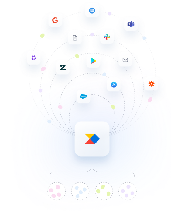 Connect with more feedback sources than ever before, now including public review sites like G2, the Apple App Store, and Google Play Store.
